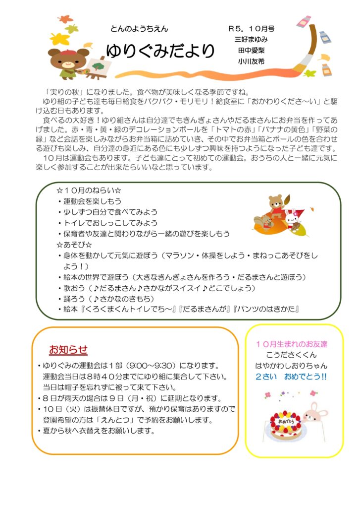 ゆりぐみだより10月号